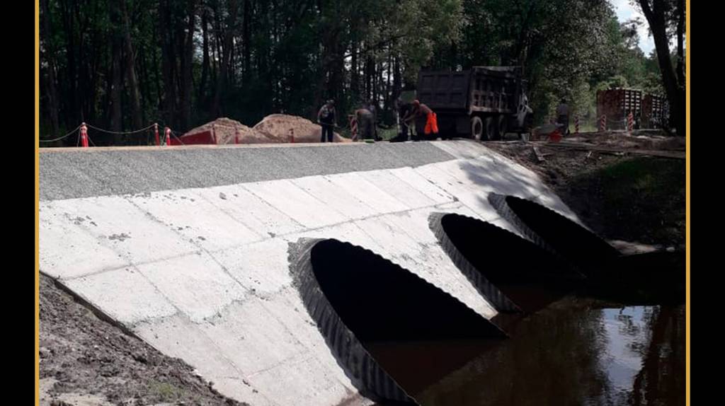 Как рассказывает ТРК «Брянская Губерния», уже смонтированы трубы с бетонными лотками, сделаны площадки входа и выхода труб и основание насыпи. На одной половине моста, где ранее было деревянное покрытие, уложили асфальт. Движение по мосту открыто по обновлённой части.
