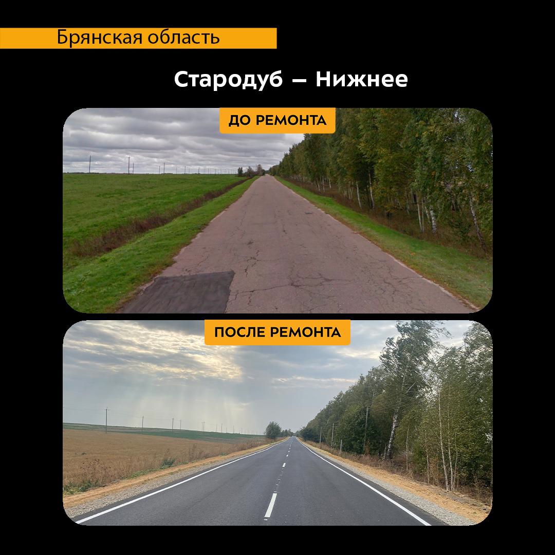 Так, по национальному проекту «Безопасные качественные дороги» в Стародубском муниципальном округе Брянской области в прошлом году отремонтировали участок автодороги Стародуб – Нижнее. Его протяженность составила 4,6 километра.