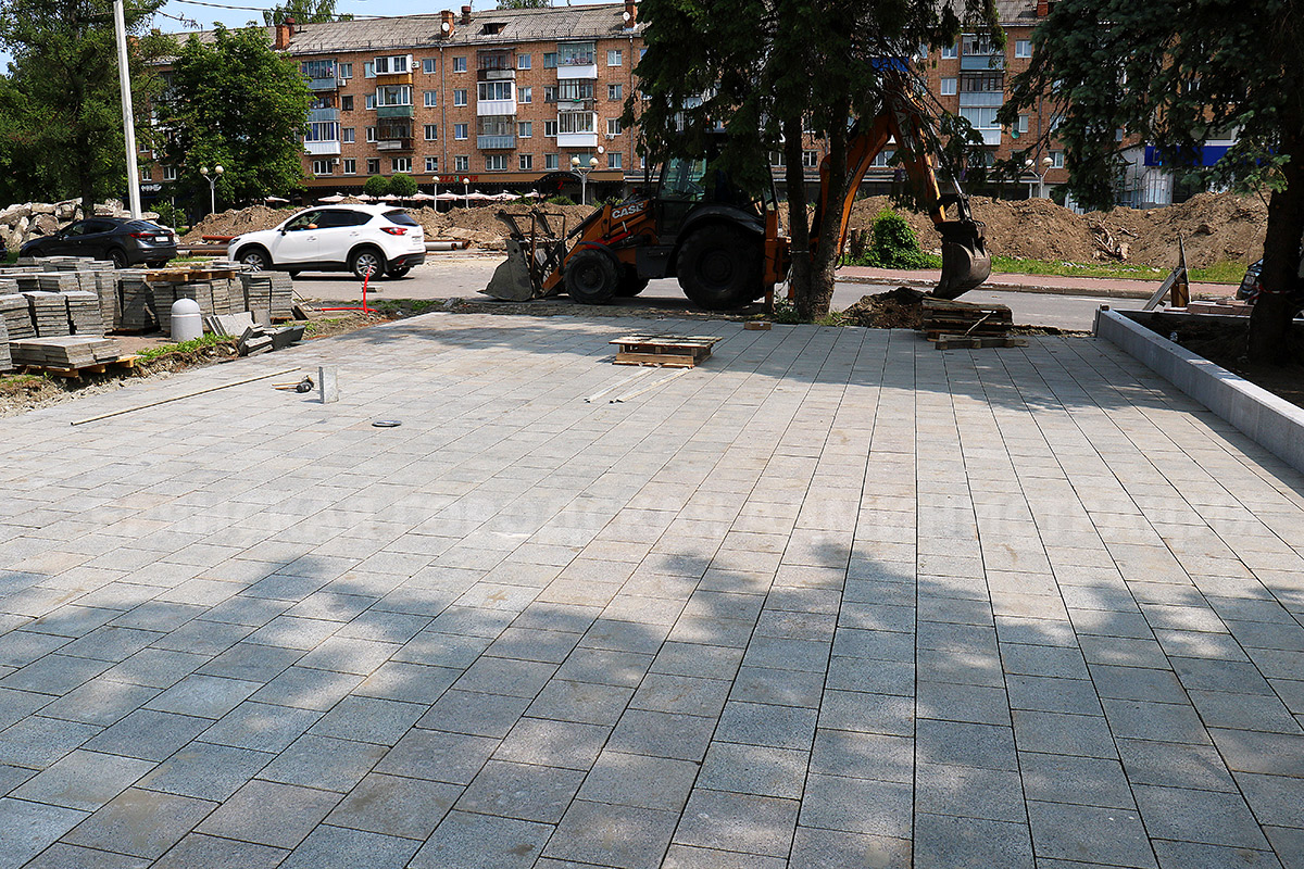 С площади частично демонтировали старую плитку, которая после очистки будет уложена на подготовленное основание. Новую добавят при обнаружении дефектов. Технология монтажа плитки схожа с той, которую применили на площади Ленина. Чтобы не повредилось покрытие при проезде уборочной техники зазор между плитками заполняют песком.