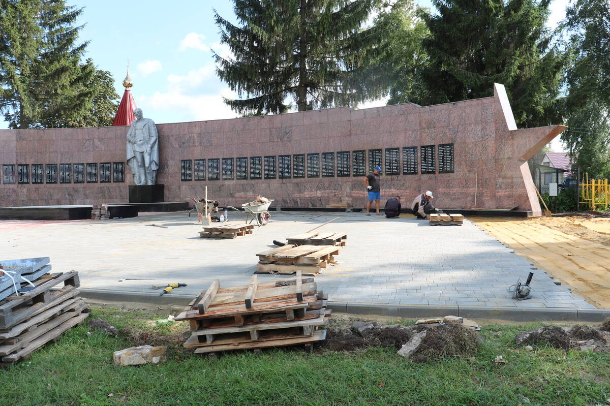 Как сообщает «БрянскToday» , подрядчиком на объекте выступило ООО «Стройтрейд». В данный момент возведена новая полукруглая стена. На ней размещены таблички на чёрном граните с именами погибших в годы Великой Отечественной войны земляков. Произведена реконструкция скульптуры солдата, постамента и Вечного огня. Сейчас рабочие кладут плитку, затем приступят к благоустройству и установке освещения.