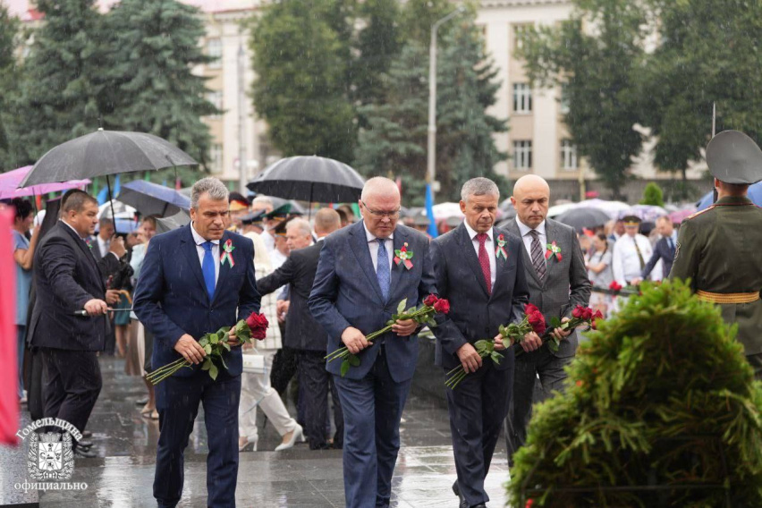 Как сообщает РИА «Стрела», с российскими делегациями встретился председатель Гомельского облисполкома Иван Крупко. Виталий Свинцов был награжден нагрудным знаком «80 лет освобождения Гомельской области от немецко-фашистских захватчиков». Открыло празднование Дня Независимости и 80-летия освобождения Беларуси от немецко-фашистских захватчиков шествие руководства региона, ветеранов, трудящихся и творческой молодежи. Жители и гости Гомеля собрались у площади Восстания и прошли по улице Советской до места проведения митинга на площади Труда. Масштабное празднование собрало множество гомельчан. По улицам прошли колонны техники, произведенной в Беларуси. В мероприятии участвовали трудовые коллективы, гости и жители региона. Затем руководство Гомельщины и российские делегации прибыли к Вечному огню у братской могилы советских воинов и подпольщиков, чтобы возложить венки и цветы.