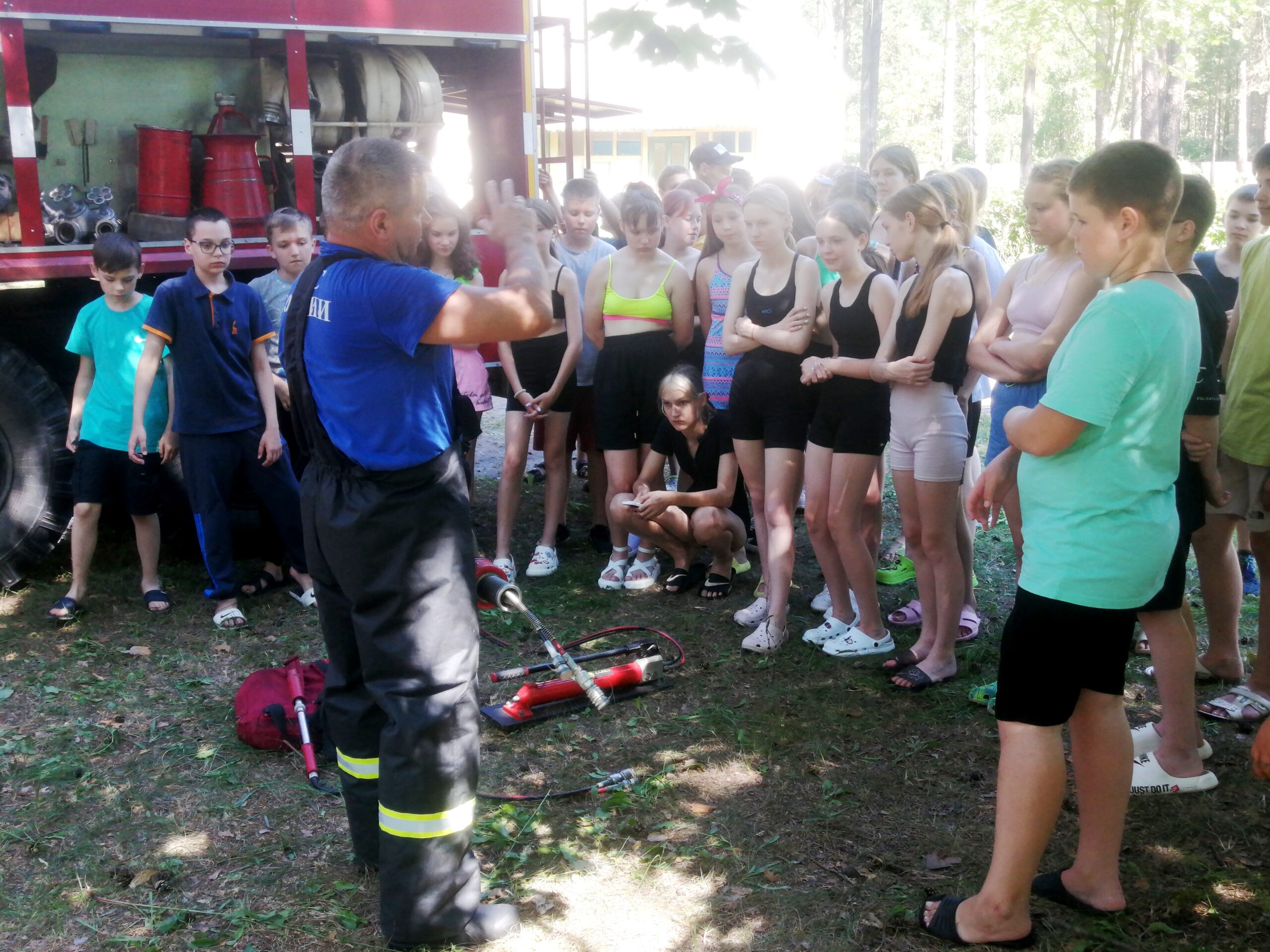 2 июля в летнем оздоровительном лагере с круглосуточным пребыванием детей «Синезёрки» сотрудниками МЧС был проведен «День безопасности».