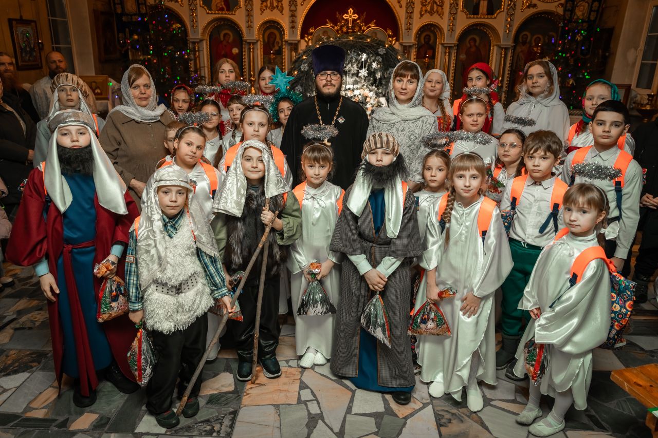 В этот Рождественский вечер преподаватели, дети, родители и гости собрались, чтобы вместе прославить Богомладенца Христа. Дети под руководством директора школы матушки Ирины Учватовой пели Рождественские колядки и читали стихи.