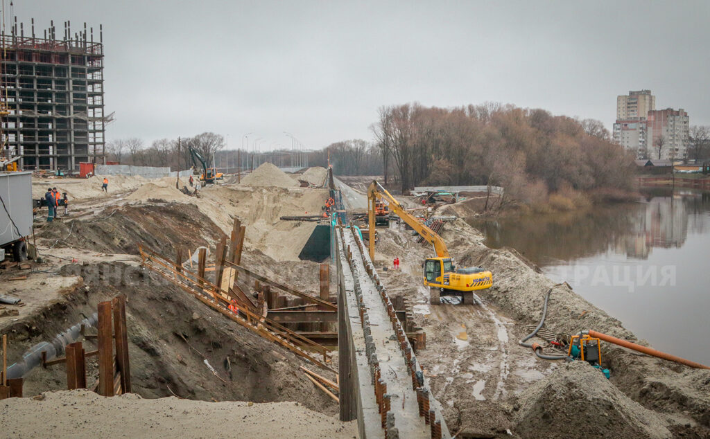 По словам начальника участка подрядной организации Дмитрия Пережило, осталось сделать 160 метров подпорной стены, которая укрепит берег и защитит улицу Братьев Ткачёвых от вод реки. Рабочие готовятся залить бетоном последние секции.
