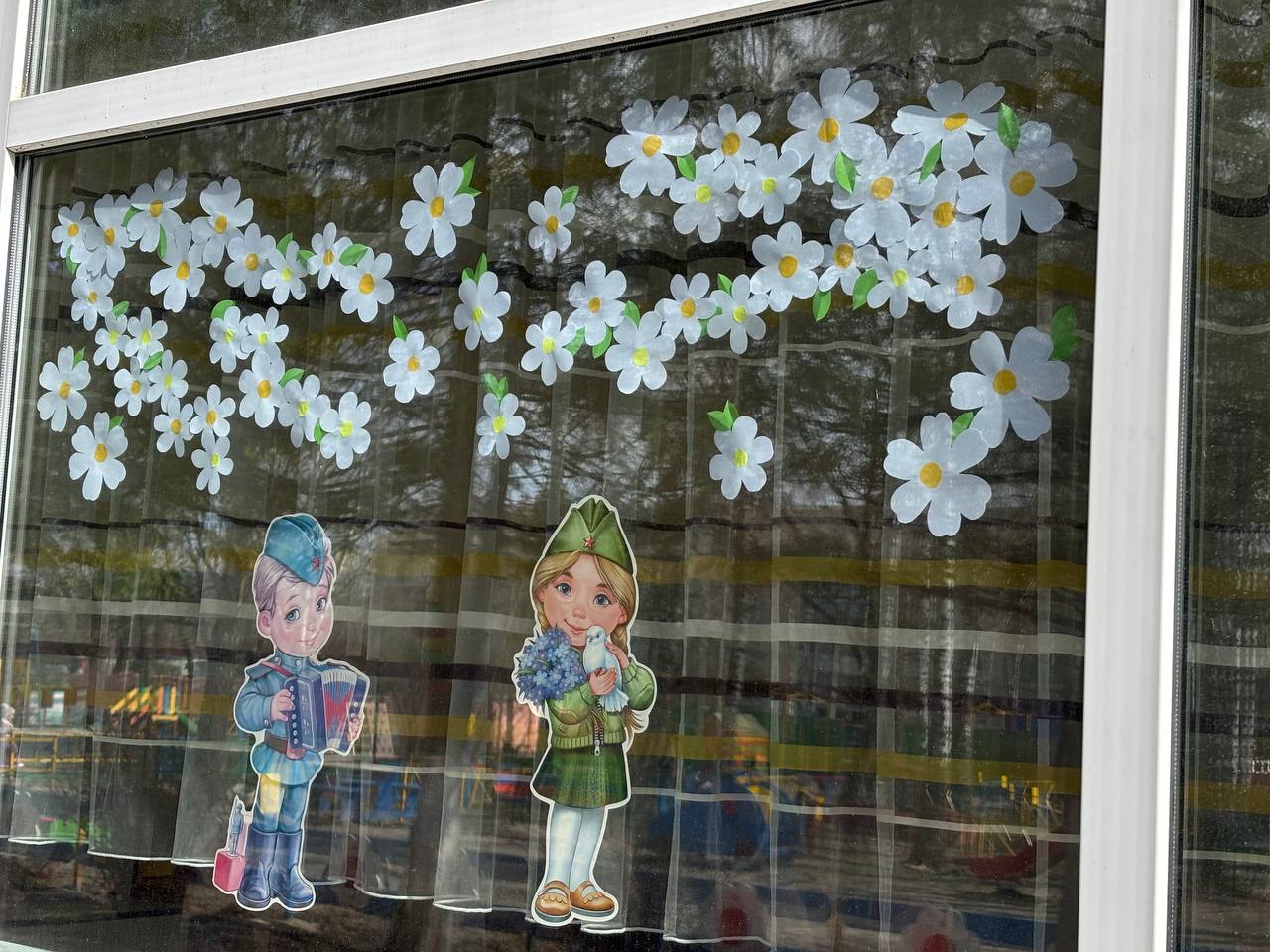 В преддверии Дня Победы учреждения поселка и района продолжают украшать окна и фасады в честь этого важного события.