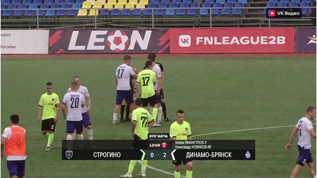 В Москве на стадионе «Янтарь» закончился матч 10 тура первенства второй лиги Б. Брянское «Динамо» встретилось с клубом «Строгино». Сине-белые сумели забить быстрый гол.