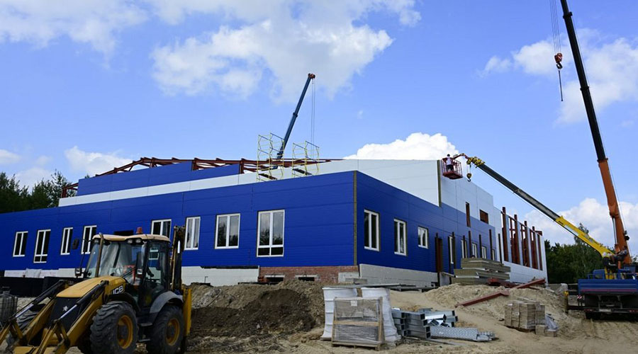 В новом спортивном сооружении будет современный центр с 25-метровым бассейном и универсальным спортзалом. В настоящее время на объекте установлены металлические колонны, оштукатурены перегородки в административной зоне и запущена котельная. Строители заняты монтажом кровельных ферм, стеновых панелей и чаши бассейна. Об этом сообщает РИА «Стрела».