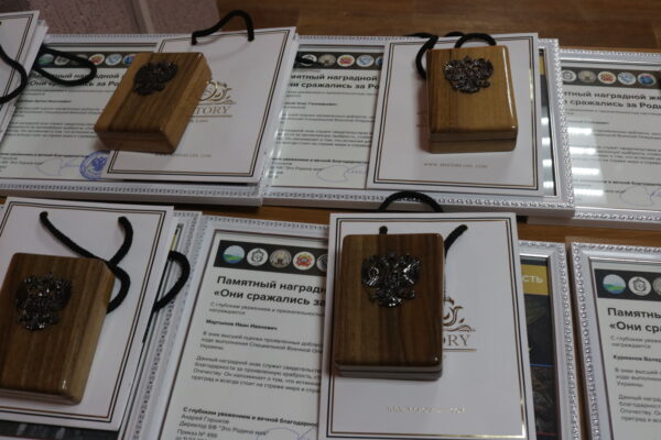 В рамках мероприятия состоялось торжественное вручение памятных жетонов «Они сражались за Родину» родственникам защитников Отечества. Этот наградной знак – не просто символ, а свидетельство искренней благодарности за проявленную храбрость, стойкость и преданность Отчизне. Он призван напоминать о том, что истинная доблесть не знает преград и всегда стоит на страже мира и справедливости.