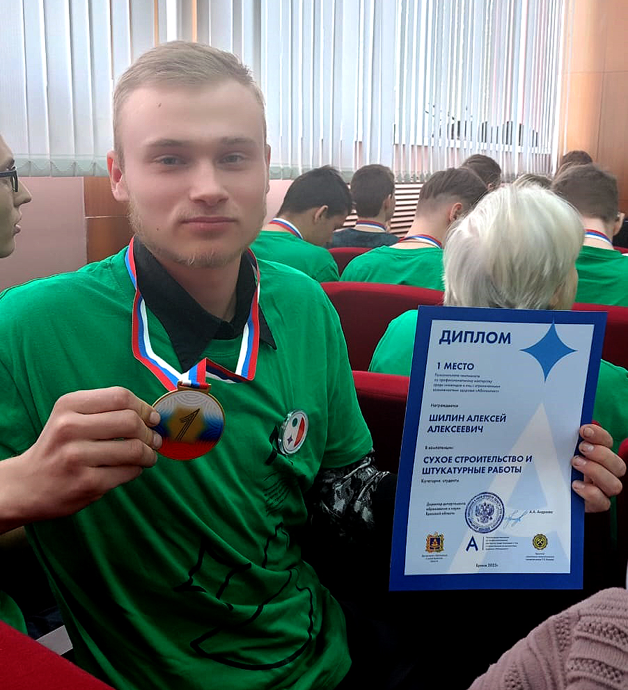 Соревнования прошли в трех категориях – «школьники», «студенты», «специалисты». Наш студент Навлинского филиала Комаричского механико-технологического техникума Алексей Шилин также принял участие в состязаниях. И показал отличный результат! Он занял первое место в компетенции «Сухое строительство и штукатурные работы».