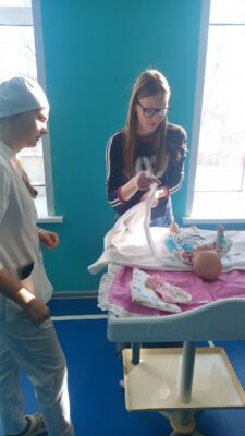 Ребятам предоставили возможность всё попробовать своими руками: узнали, как правильно пеленать новорожденного, остановить кровотечение, снять ЭКГ, извлечь инородное тело, выполнить внутримышечную инъекцию на фантоме, изготовить лекарственный препарат.