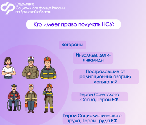 Набор социальных услуг (НСУ) — это мера государственной поддержки, которая входит в состав ежемесячной денежной выплаты и предоставляется ветеранам и участникам Великой Отечественной войны, СВО, гражданам с инвалидностью, в том числе детям, участникам войн в Афганистане, Чечне, участникам ликвидации чернобыльской аварии и гражданам, пострадавшим от ядерных испытаний на Семипалатинском полигоне.
